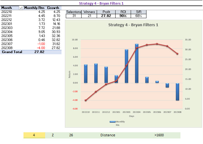 Here we only look at the races greater than 1600 metres, yes not many races, but look at the figures.