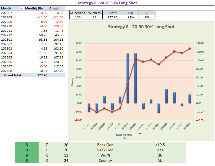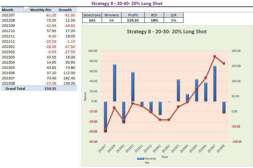 This strategy is betting the horses between 20 and 30.00 in the odds.
