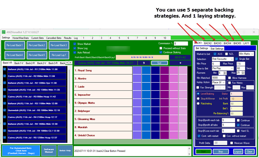 It waits and monitors every race just looking for the right selection to match your settings (the strategies) we have above can all be used on one bot.