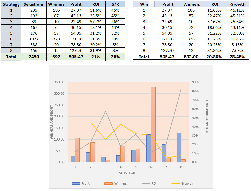 We take the ROI from 22% to a high 30% so a 8% increase, plus we take the Strike Rate up to 49%